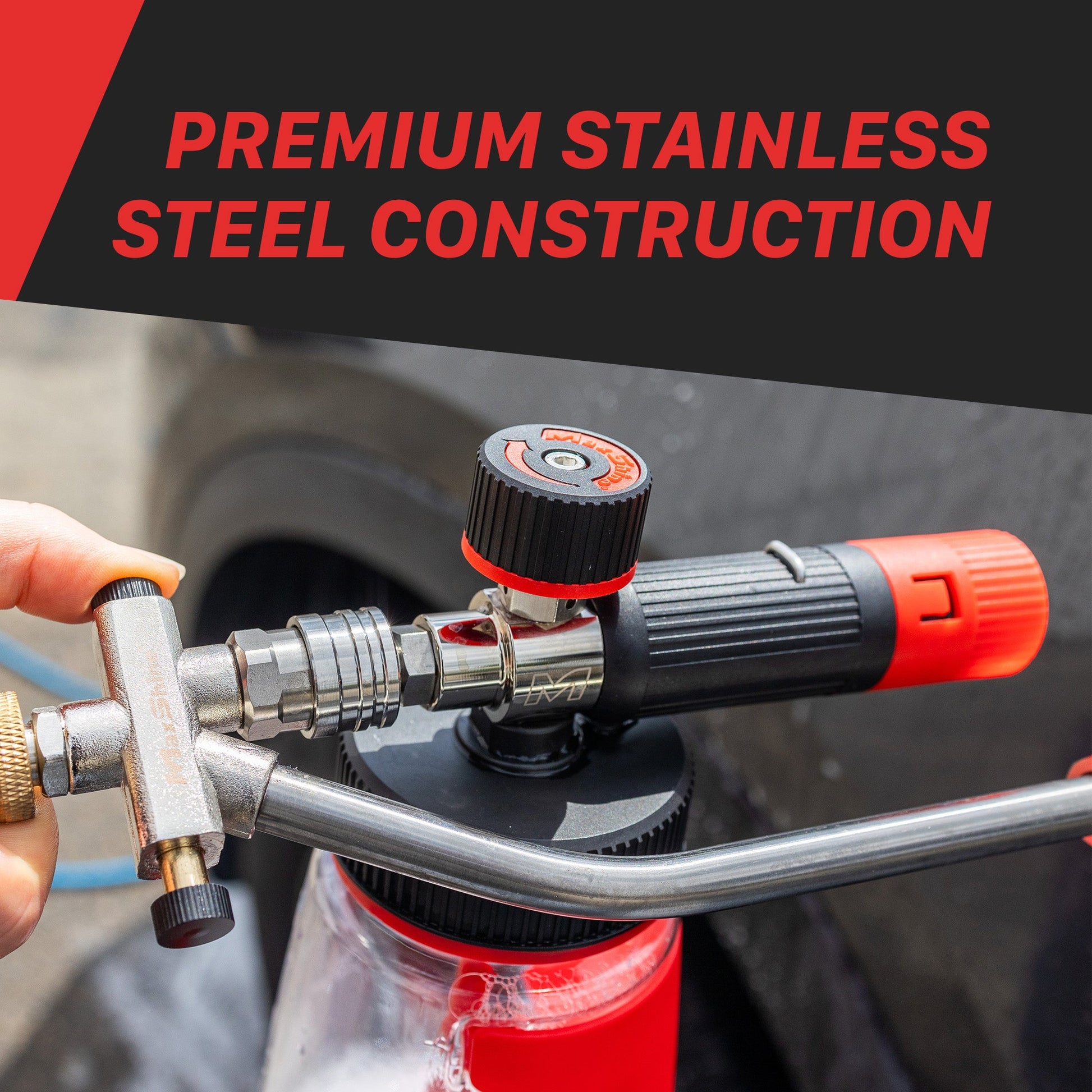 This dual lance pressure washer wand has been designed to optimize your cleaning steps and save you time and effort. With this versatile accessory, you can easily switch between the pressure washer nozzle and foam cannon without the need for repeated replacement. Simply connect the adapter to your pressure washer and attach your desired nozzle and cannon. The quick connect design makes it easy to switch between tools, while the durable stainless-steel construction ensures long-lasting performance. The Foam and Wash 2 in 1 System is a must-have for fast and efficient detailing.