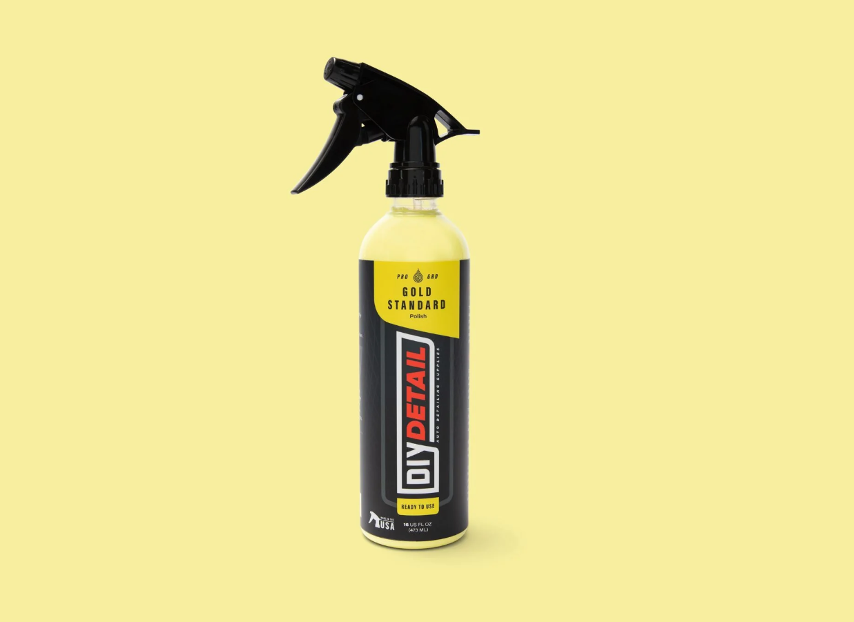 The DIY Detail Gold Standard Polish spray application is designed to provide proper dosing and polish distribution on the polishing pad. Spraying on the pad also reduces excessive product use. The Gold Standard Car Polish quickly and gently removes fine swirls and towel marks to create a mirror-like reflection on your car's exterior. This product is safe on all glossy paints including clear coats.