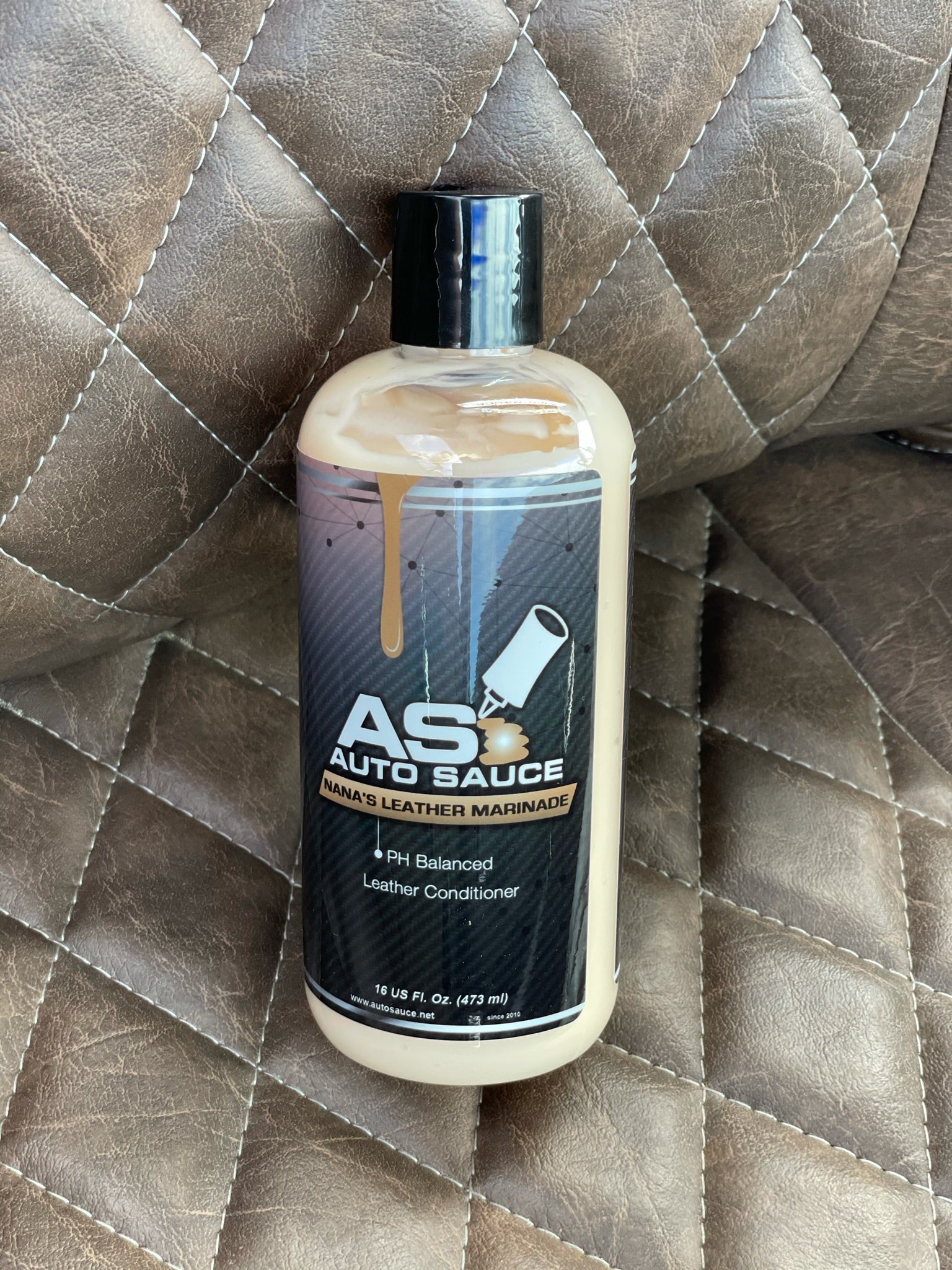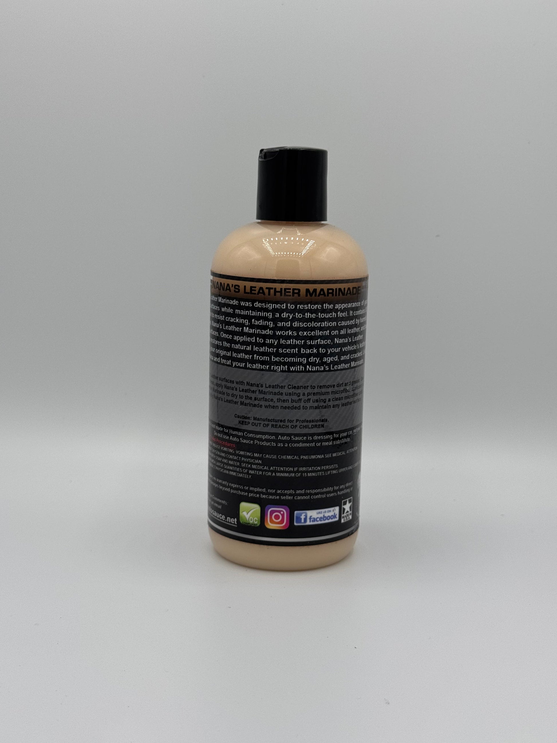We designed Nana’s Leather Marinade to restore the appearance of your leather surfaces while maintaining a dry-to-the-touch feel. It is formulated with UV protection to resist cracking, fading, and discoloration caused by harmful solar rays. Nana’s Leather Conditioner works excellent on all leather, leatherette, and faux leather surfaces. Once applied to any leather surface, Nana’s Leather Conditioner restores the natural leather scent back to your vehicle’s leather and prevents your original leather from becoming dry, aged, and cracked. Listen to your Nana and treat your leather right with Nana’s Leather Conditioner and Cleaner.