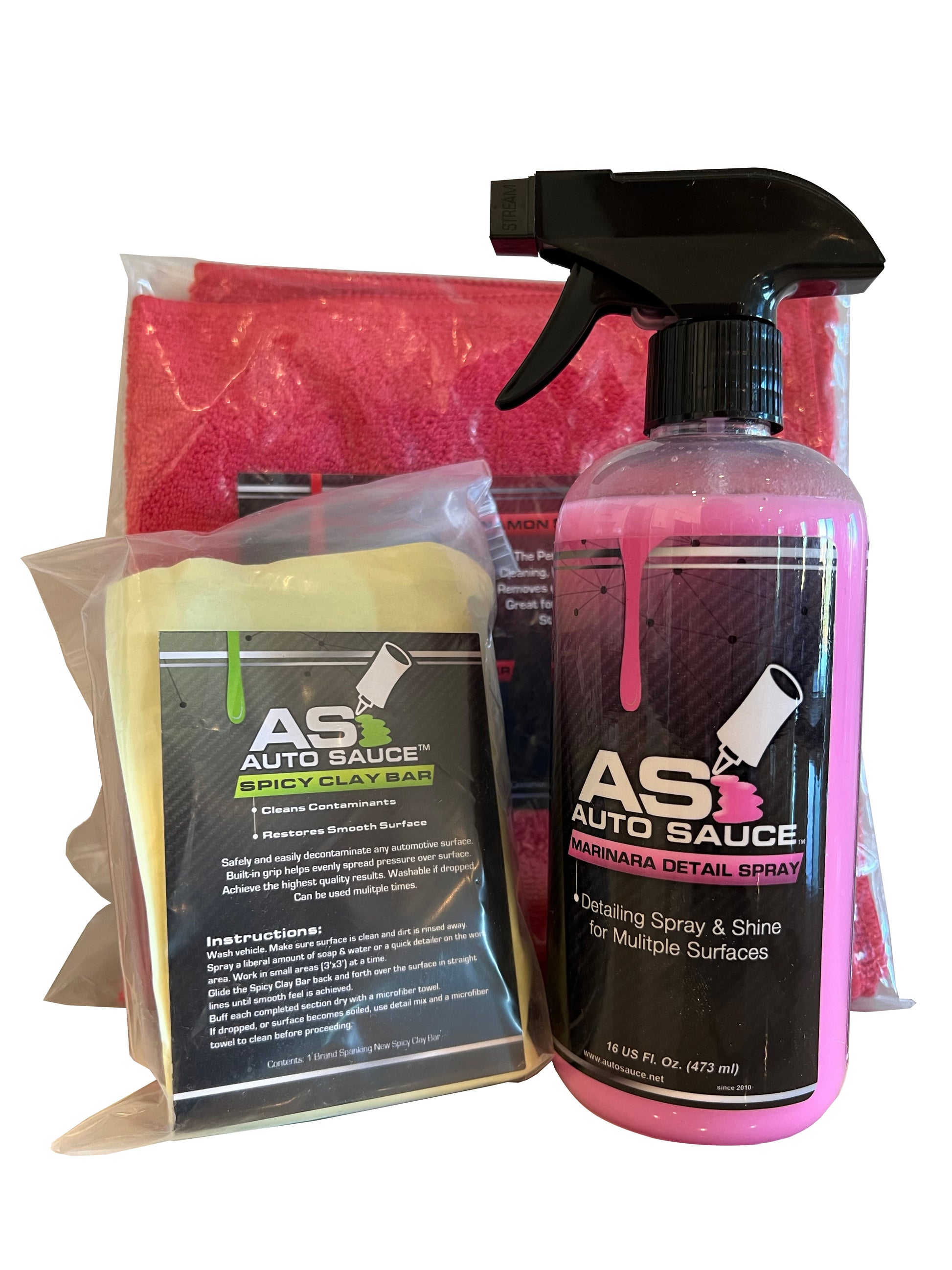 Time for a Paint Correction? Prepping for a Vehicle Wrap or adding Paint Protection Film? We got you. Our Spicy Clay Bar Kit is Step 1 in the process of getting your surface smooth and clean. Eliminate contaminants and road debris with our Clay Bar Kit. We combined Marinara Detail Spray, our Spicy Clay Bar and a pair of our Cinnamon Spice Microfibers to help you tackle the task of achieving a smooth surface.