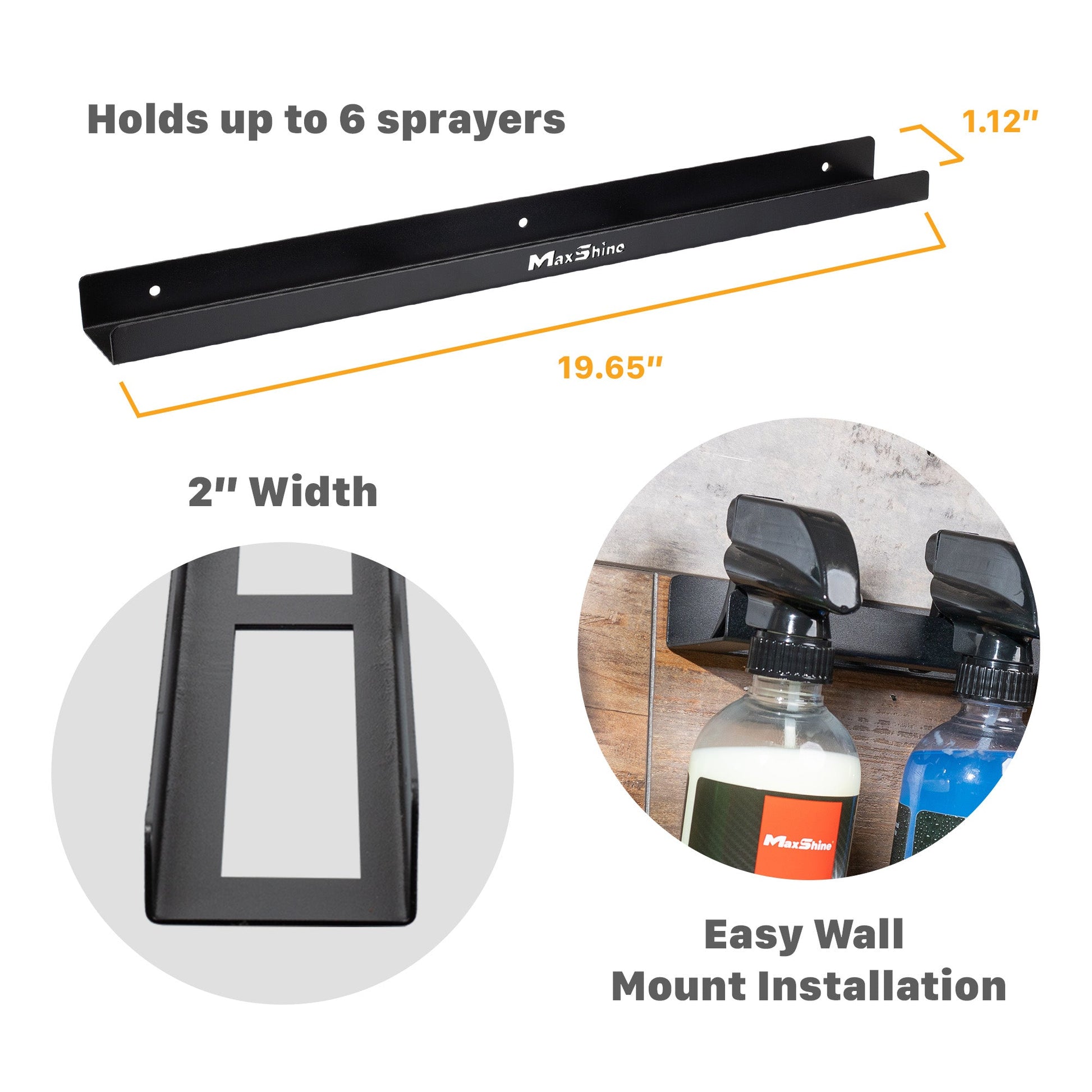 This Spray Bottle Hanger lets you ditch the clutter and cracked bottles! Keeps up to 8 detailing sprays chemicals organized and within reach, thanks to 3 extended slots and a convenient wall-mounted design. Built with durable metal and installs in minutes, our trigger bottle holder is the clutter-conquering car care companion you need!